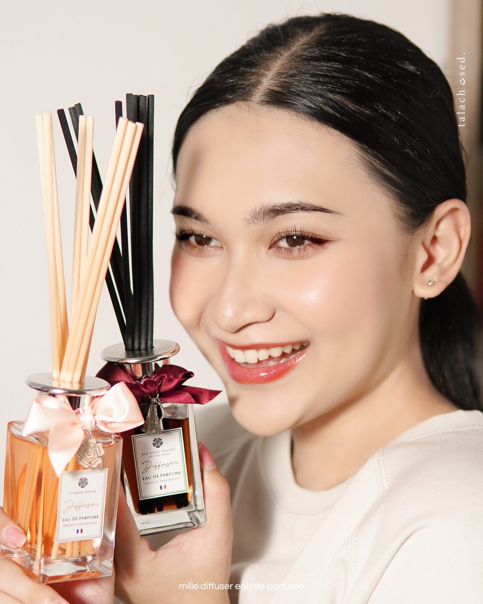หอมจนทุกคนทักว่า ห้องหอมมาก! Mille - Diffuser ตัวใหม่ เป็น EauDeParfume หอมกระจายยาวนานมาก! ตี้ใช้ 2 กลิ่นวางคนละจุดในห้องกลิ่นคือเข้ากันมาก ได้กลิ่นหอมตลอด ไม่ฉุน ไม่แสบจมูก กลิ่นหรูมากจนคิดว่านี่อยู่บ้านหรอ