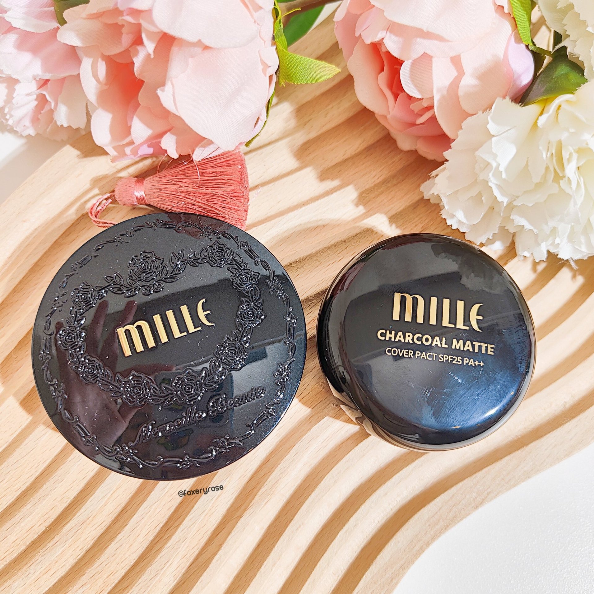 Mille Charcoal Matte Cover Pact SPF25 PA++ แป้งชาร์โคลผสมรองพื้นผลิตจากญี่ปุ่น