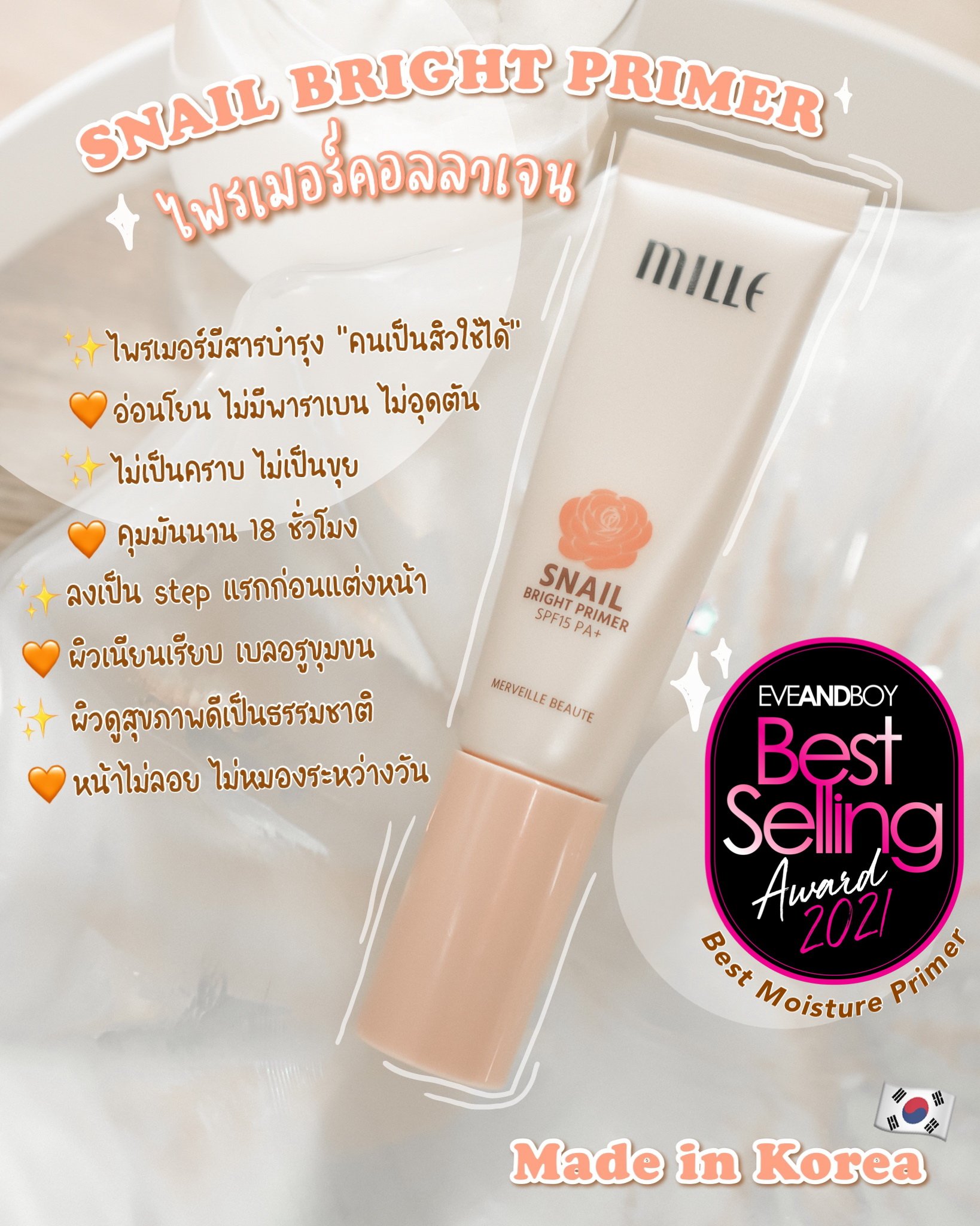 สมมง นะซิส กับตำแหน่ง รางวัลสินค้าขายดี ความนิยมสูงสุดจาก EVEANDBOY BEST SELLING AWARD 2021 ในหมวด Best Moisture Primer สำหรับ MILLE SNAIL BRIGHT PRIMER