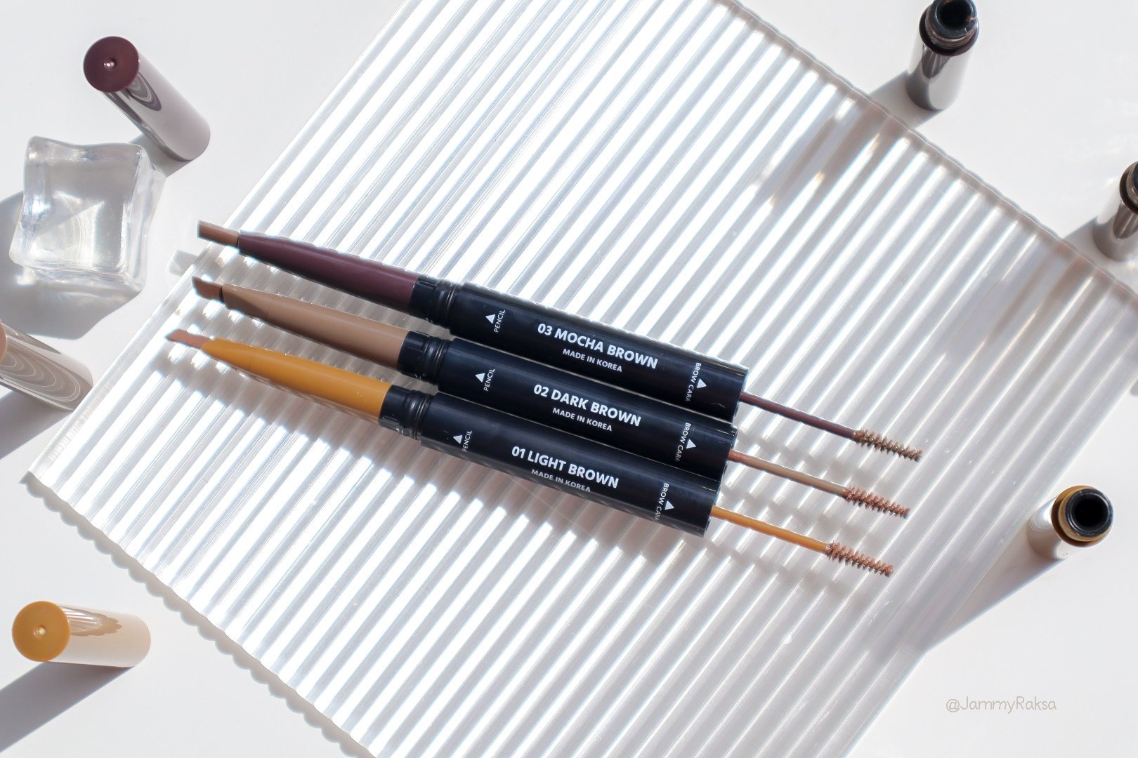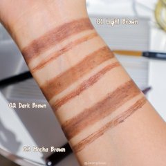 หัวดินสอทรงหยดน้ำ เนื้อเนียนเขียนง่าย หัวมาสคาร่าเล็กเรียว ปัดได้เส้นต่อเส้น ผลิตเกาหลีด้วยนะ ปังมากๆ เราใช้ 02 โทนสีน้ำตาล สวยแป๊ะแบบคมชัดเลย