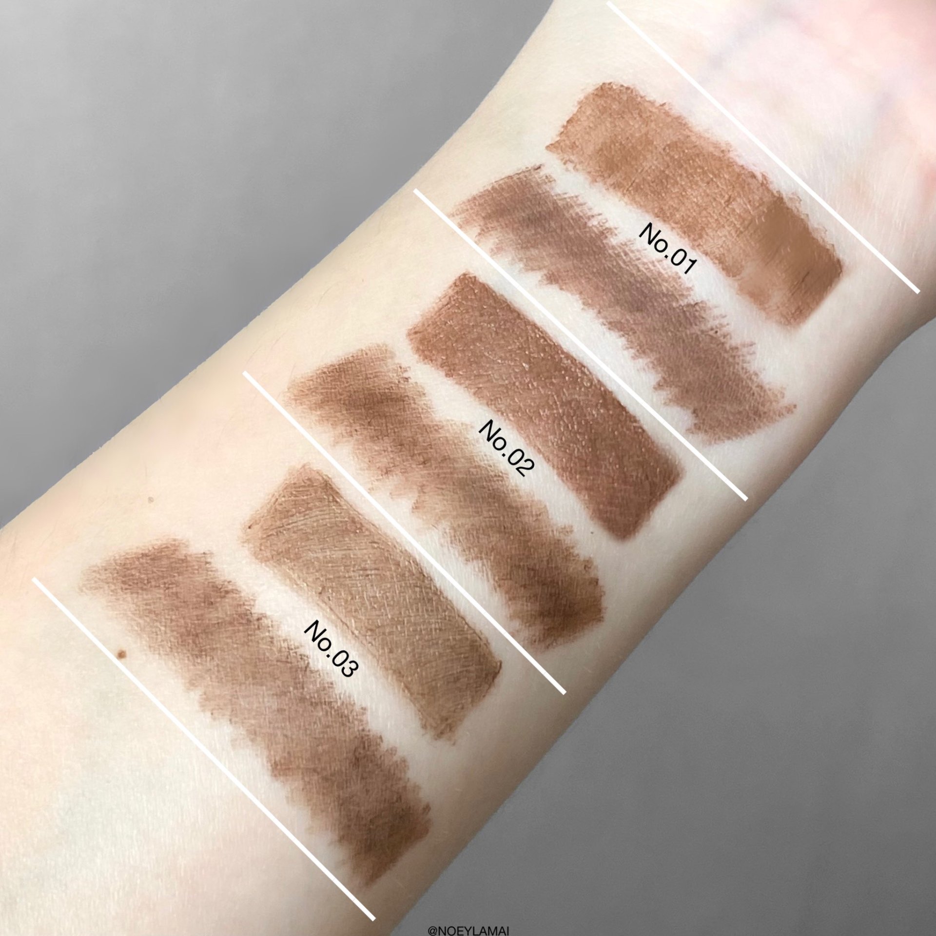 เราใช้เบอร์ 03 Mocha Brown สีน้ำตาลธรรมชาติ ติดทนดีมาก มี 3 เฉดสี น้ำตาลอ่อน, น้ำตาล, น้ำตาลเข้ม โทนสีดีมากๆๆ เกาหลีจริง Made in Korea ด้วย แนะนำเลย พกพาสะดวก ชอบบบ