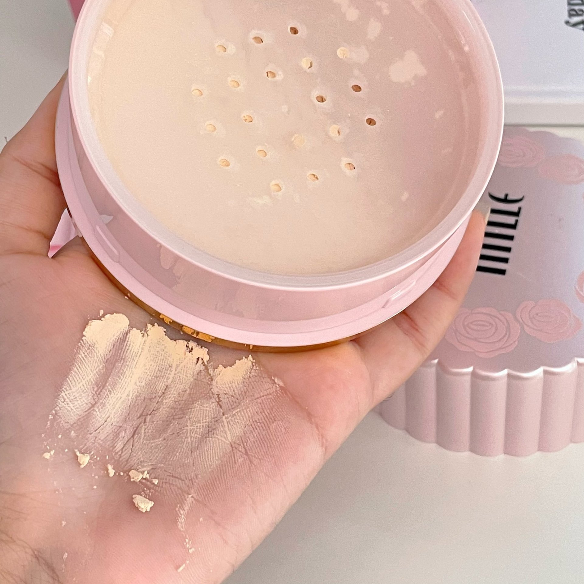 แป้งฝุ่นMille แพ้ทางแพกเกจมากก รร เจ้าหญิง แต่เซอร์ไพร์สกว่าใช้แล้วผิวสวยมากกกก เนื้อTranslucent แต่เบลอรูขุนขน ใช้ได้ทุกสีผิว ได้งานผิวเนียนมาก พัฟก็นุ่มมากๆ เลิฟมาก แถมยัง Made in korea ด้วยนะดีจริง