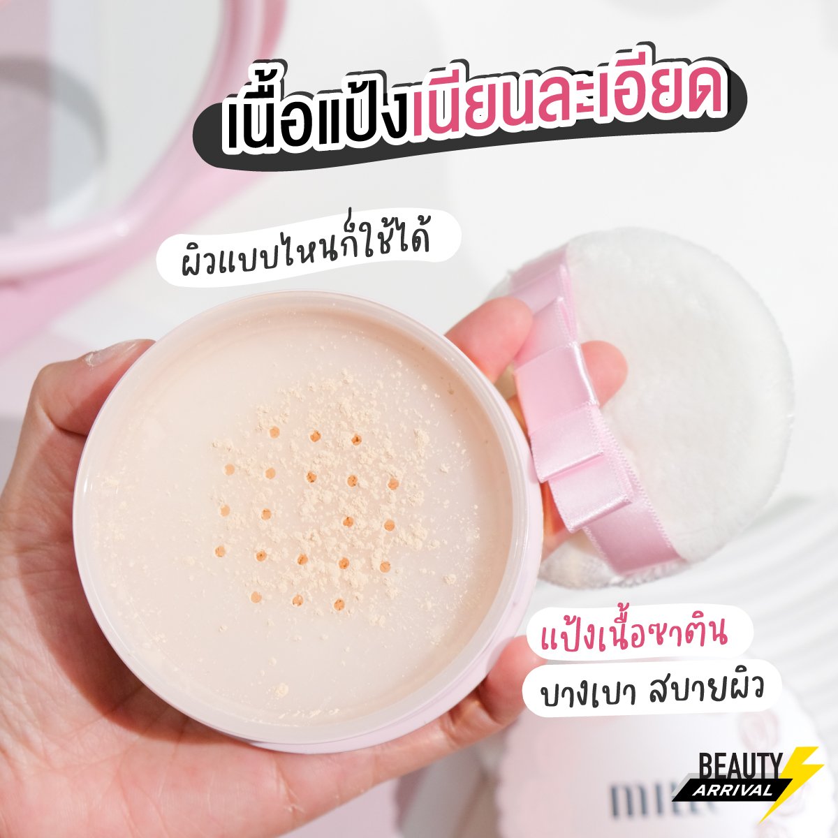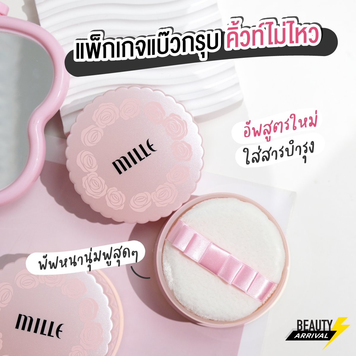 น่ารักเกินปุยมุ้ยยยย แป้งฝุ่น Mille อัปเกรดสูตรใหม่! ให้งานผิวสวยละมุนเล่นแสง